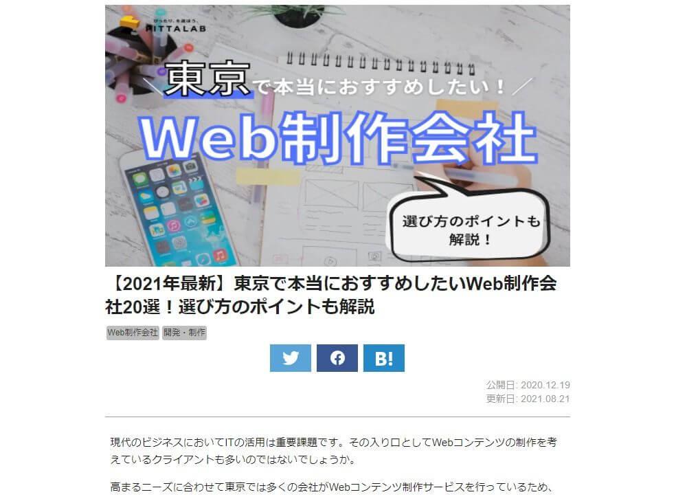「PITTALAB」にて「東京で本当におすすめしたいWeb制作会社」に選ばれました!